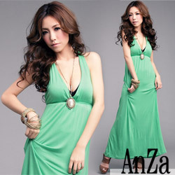 【AnZa】美型弧線‧深V領露背扭結連身長裙(共二色) 飄逸感高腰A字擺的連身裙,深V領極富女人味 不經易的轉身露出光滑美背及維佳的身形弧線 暗藏乾坤的設計,表現出不可言喻的性感