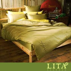 LITA麗塔(Magic Colors-橄欖綠)加大四件式純棉薄被套床包組