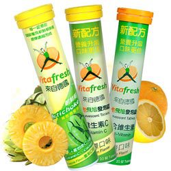新一代綜合維生素發泡錠,來自德國的Vitafresh 喝起來有如天然的柳橙果汁汽水一般,口感極其自然 內含維生素B群、維生素E、維生素C等,是極佳的維他命飲品。