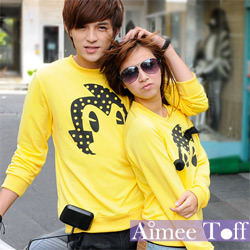 【Aimee Toff】可愛圖案長T情侶裝(黃)