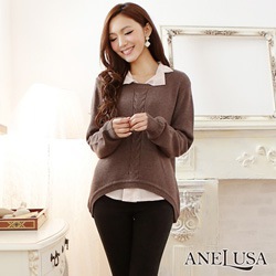 【ANELUSA】艾露莎圓弧下擺麻花針織衫(摩卡) |