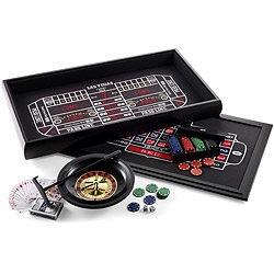 | 《VOYAGER》3 in 1 俄羅斯轉盤遊戲 攜帶式俄羅斯轉盤遊戲,不僅讓您在無聊時可以小玩一下,也促進與朋友間的話題情誼。有一大收納外盒可裝轉盤與賭注。內有莊家收注杷、4種金額賭注各25枚,兩顆骰子兩顆鋼珠、兩副撲克牌。一起與朋友小玩一場吧。