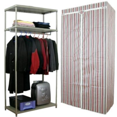 Dr.DIY超重型91寬鐵板[單桿]香檳金吊衣櫥(紅白條紋)