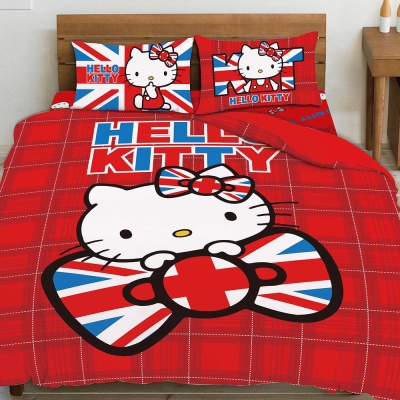 《享夢城堡》HELLO KITTY英倫風系列-單人床包兩用被組(紅)