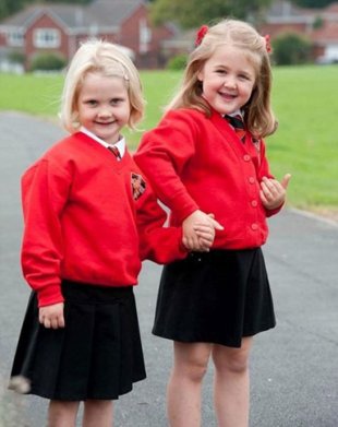 英國一對母女,同一天入院待產,而母親所生下的寶寶,與女兒所生下的寶寶,生日只差三天,而且兩名同年齡的寶寶,又在同一天入學。這對小女孩因為外貌相似,經常被當成雙胞胎。