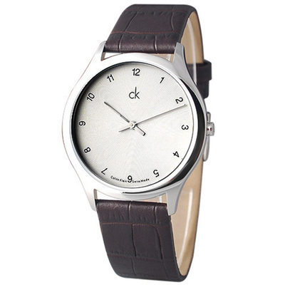 cK Classic 同心刻紋經典皮帶腕錶-銀白/38mm