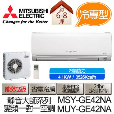 刷卡滿額禮! 超熱銷的【MITSUBISHI 三菱】靜音大師★6-8坪冷專變頻一對一(MSY-GE42NA-MUY-GE42NA)也太讚了