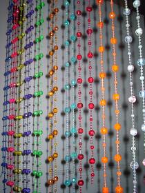 這個珠簾是小妹今年進貢的禮物﹐我娘說掛在她房門口很有[特種營業]的氣氛。我心想這個傢伙真有一套﹐挑了個省錢又華麗的東西。就是進出不太方便﹐啪啦嘩啦響。還被我弄掉一次。