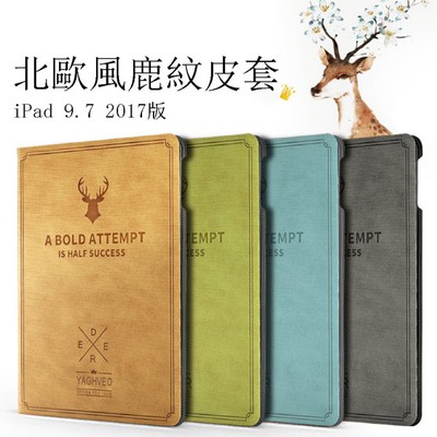 【網拍熱門商品】【ANTIAN】iPad 9.7 2017版 智慧休眠平板電腦皮套 北歐風鹿紋皮套(iPad 9.7 2017版)