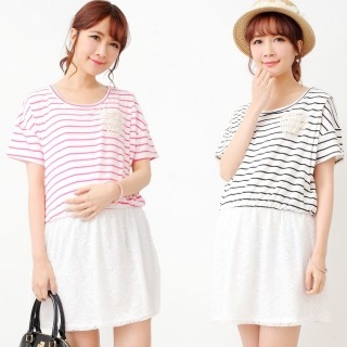 面試穿搭很重要-【時尚媽咪】圓領條紋拼接網紗哺乳洋裝(共二色) 試用文