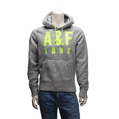 週年慶特會賣-Abercrombie Fitch 螢光黃AF內刷毛長袖連帽TEE(男-灰) 熱銷