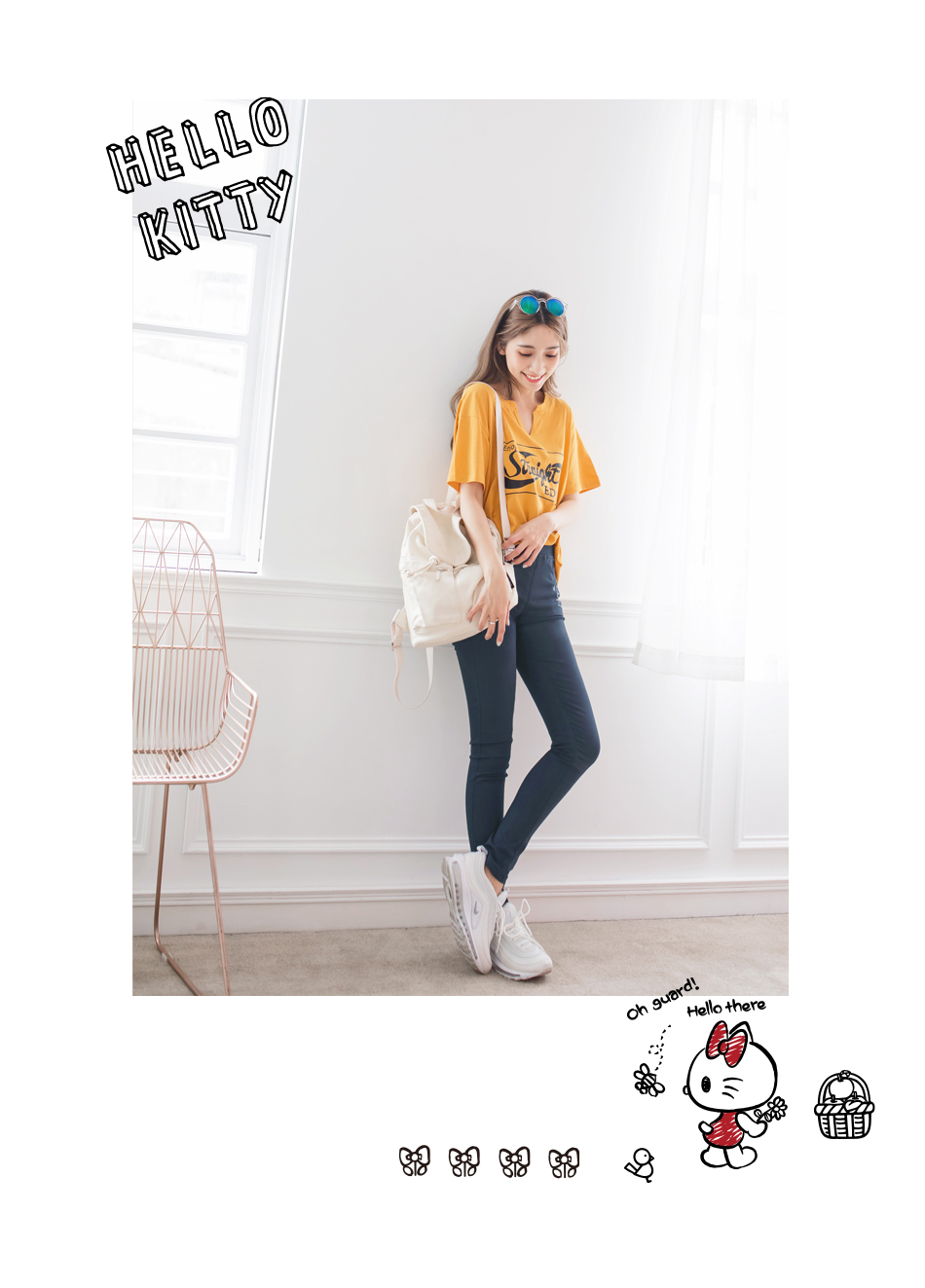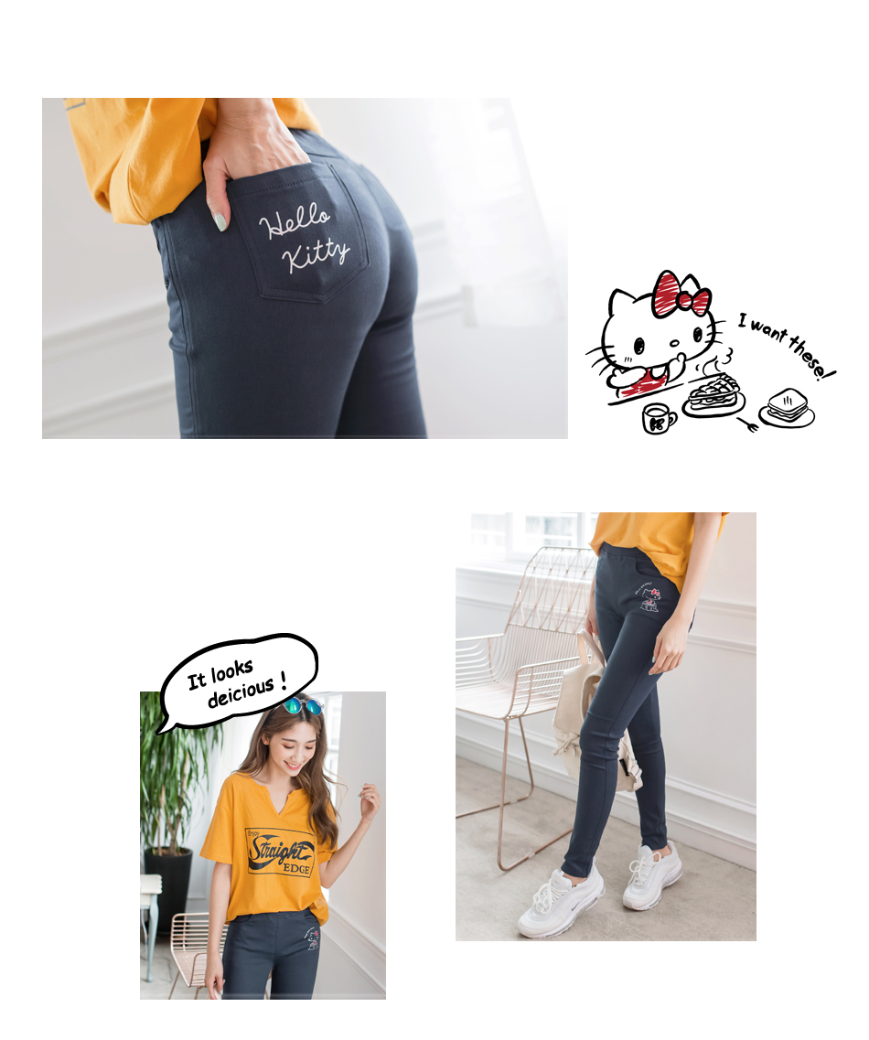穿著自在營造舒適氛圍,\\r\\n亮眼的KITTY印花簡約時髦,\\r\\n窄管版型打造修長纖細的雙腿~