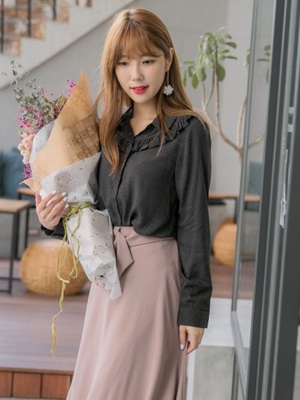 像是滿版點點綴花領設計排釦長袖襯衫 就非買不可,因為超實用的,還好我常逛的這間網站