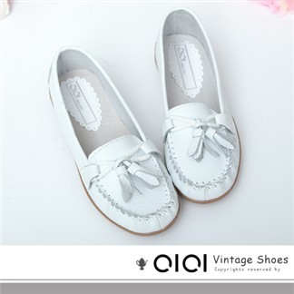 0101真皮手工系列~手工流蘇莫卡辛全真皮休閒鞋(白)