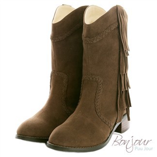 7net,7net購物網,7net雲端超商-(BONJOUR)日本銷售破萬 ! 流蘇小麻花粗跟牛仔靴-咖