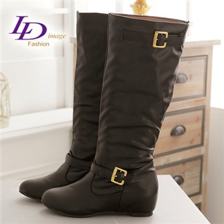 7net購物網【LD Image】時尚學院‧經典雙C金質釦環內增高長靴.靚黑rf