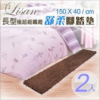 LISAN長型雪尼爾極超細纖維腳踏地墊-咖啡2入( 150X40cm)