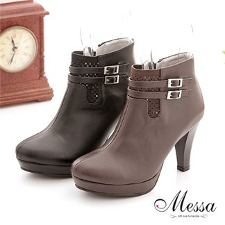 7net購物網Messa米莎 (MIT)唯美皮帶粗跟踝靴-兩色_1yr