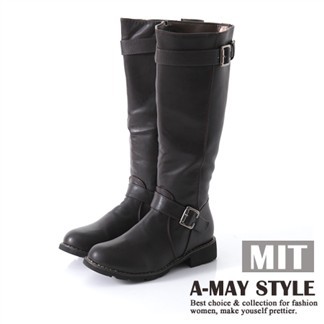 7net,7net購物網,7net雲端超商-(艾美時尚)韓風寬筒拉鍊長筒工程靴-棕