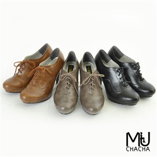 (MUCHACHA)[MIT台灣製造]擦色雕花洗色皮革經典中跟牛津鞋-3色