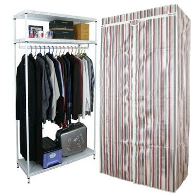 Dr.DIY 超重型91寬鐵板[單桿]衣櫥-紅白條紋布套