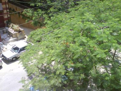 照片是從范家陽台眺望樓下。鬱鬱蔥蔥。