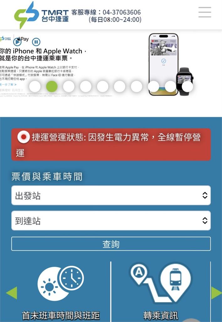 台中捷運今(22)日19時47分發生電力異常,導致全線暫停營運,預計20時46分恢復。