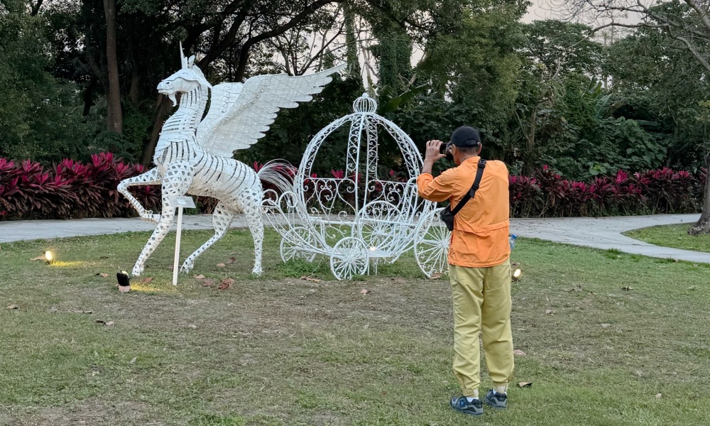 燈光點亮後,已有不少鄰近居民與在附近上班的民眾前來散步賞燈、停留拍照。於附近上班的許小姐分享,先前路過注意到園區進行燈飾佈置,如今燈海點亮後讓環境變得更明亮,「很漂亮,也更想多走幾圈」。民眾蔡先生週末帶孩子到園區散步,覺得飛馬與馬車造型可愛,且地點鄰近美崙山公園,步道與綠地可串聯成親子散步路線;無論是牽手走在星光步道、或在飛馬馬車旁合影,都能輕鬆拍出親子出遊的「網美照」,留下新春走春的溫暖瞬間。