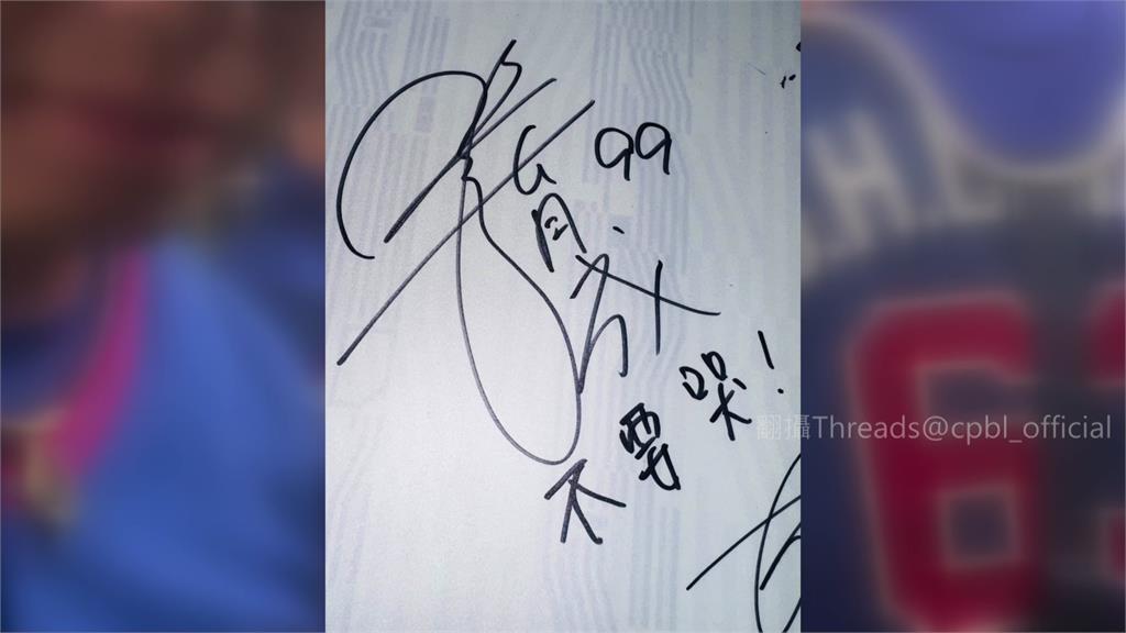 中職在社群分享一段影片,其中一幕翻出張育成在集訓報到時寫給隊友的留言板。圖/翻攝自Threads@cpbl_offcial中職官方社群分享這段影片時,也翻出張育成在集訓報到時寫給隊友的留言板,上頭大大寫著「不要哭」,如今他卻和全隊一起流下感動的眼淚。而在休息區裡,除了勝利的感人時刻,也能看到因傷未能出賽的龍仔與李灝宇的球衣,人雖然不在場,但精神同在。