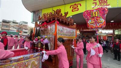 補財庫三司財庫官廟桃園龍德宮四媽祖,從4日開始,展開九天八夜的南巡徒步遶境活動,在昨(6)日時,鑾轎隊伍抵達豐原,信眾熱情歡迎。值得一提的是,四媽祖的鑾轎,負責扶轎的轎班成員清一色都是女性,也成為這場宗教盛事的一大特色。