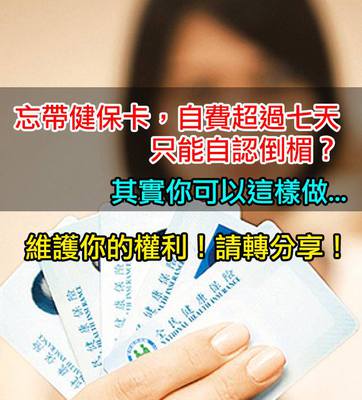 忘帶健保卡,自費超過七天,自認倒楣------答案:錯