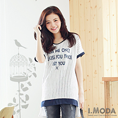 OB嚴選0715新品 休閒風潮~撞色直條紋字母前短後長上衣‧2色』