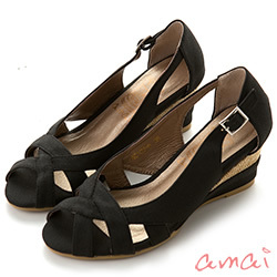 好物開箱文-amai*知性和風‧百搭交叉編織楔型涼鞋*知性黑