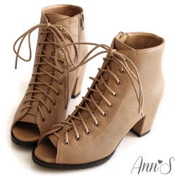 好物開箱文-Ann’S復古印象.個性綁帶魚口短靴*杏