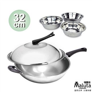7net購物網【Maluta】原味七層複合金炒鍋雙耳42cm附蓋_送料理盆_2