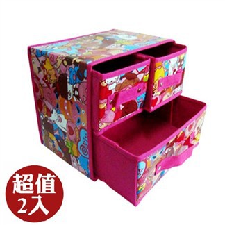 7net購物網《超值2入》TaiCheng可愛動物防水二層三抽屜收納箱_7