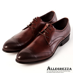 ALLEGREZZA.真皮沖孔楦頭皮鞋-咖