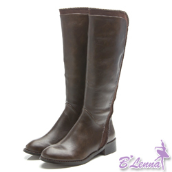 B’Lenna~異材質拼接顯瘦造型平底長筒靴 咖啡