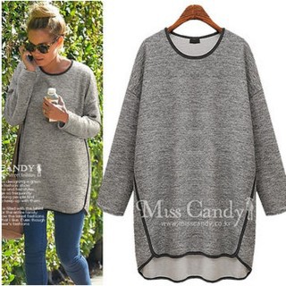 momo購物台,momo購物網:【周董的店】韓國空運《不平衡滾邊配色刷毛長版T》(預購)