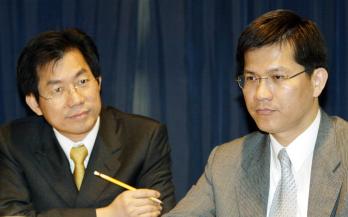 李應元和林佳龍,兩位民進黨的中生代帥哥,正在吃巧克力。 李應元在謝長廷的勸慰下,放棄布局已久的台北縣長人生藍圖,留在行政院。 林佳龍則宣布辭去新聞局長職務,投入台中市長選戰,挑戰胡志強。 選...