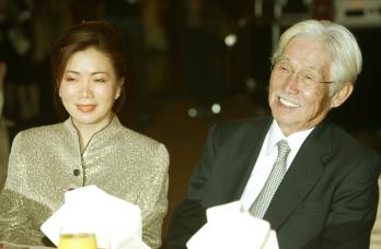 她是辜寬敏的太太,可不是女兒。 也許年齡差距大了很多,但二人的氣質卻是相配的。 這種氣質,讓人看起來很舒服、很溫文儒雅。 在現場的攝影記者,鏡頭都對著他們。 沒想到~~ 辜寬敏用手碰觸她...