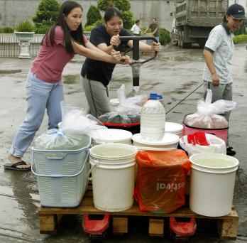 我提過水,就是拿家裏最大的一個水桶,去消防車前排隊。