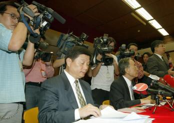其實是一場無聊的記者會,不過,所有攝影記者都站到主角後面,也算是採訪奇觀啦。