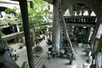 內部裝潢使用了大量的漂流木、枯樹幹與貝殼、石頭。