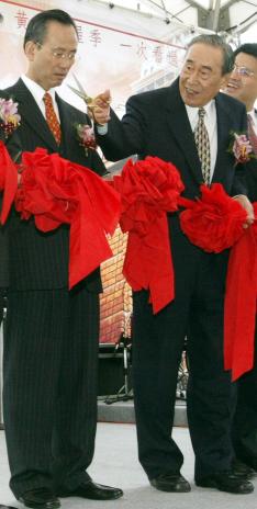 拿剪刀的是國泰世華銀行的董事長汪國華。