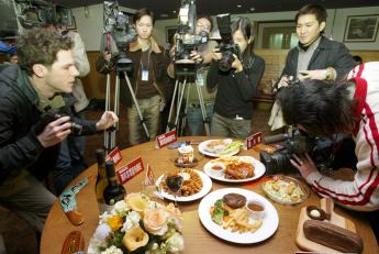 我也不知道,拍個菜色,鏡頭貼到盤子前,能有什麼驚人的好畫面?