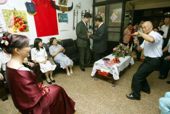 新嫁娘的父親很優,看到號稱專業的張大魯,總是不站中央位置,老是站左站右,還站到後面後,真不知在拍蝦咪碗糕。