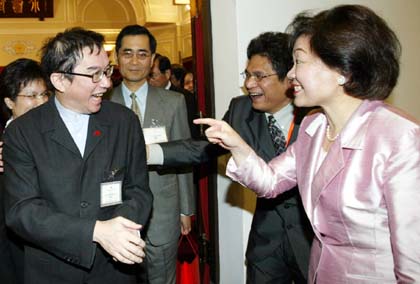 文建會主委陳郁秀,用很驚訝的表情與動作說「謝謝你親自出席」。