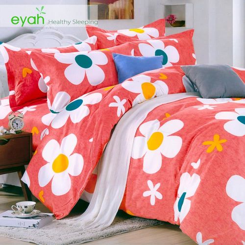 eyah宜雅頂級極細柔絲絨雙人加大床包被套4件組宜人花香