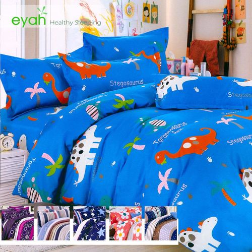 eyah宜雅頂級極細柔絲絨雙人加大床包被套4件組星漾童話
